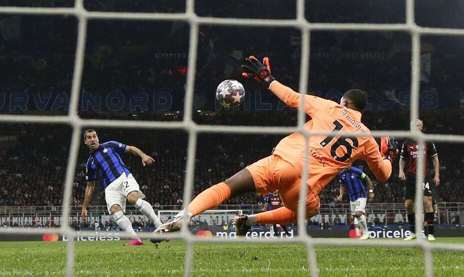 Прошло буквально минуты три и «нерадзурри» снова отличаются. Димарко протащил мяч по флангу, а затем выкатил его под удар Мхитаряну. Армянский хавбек с убойной дистанции расстрелял Меньяна.