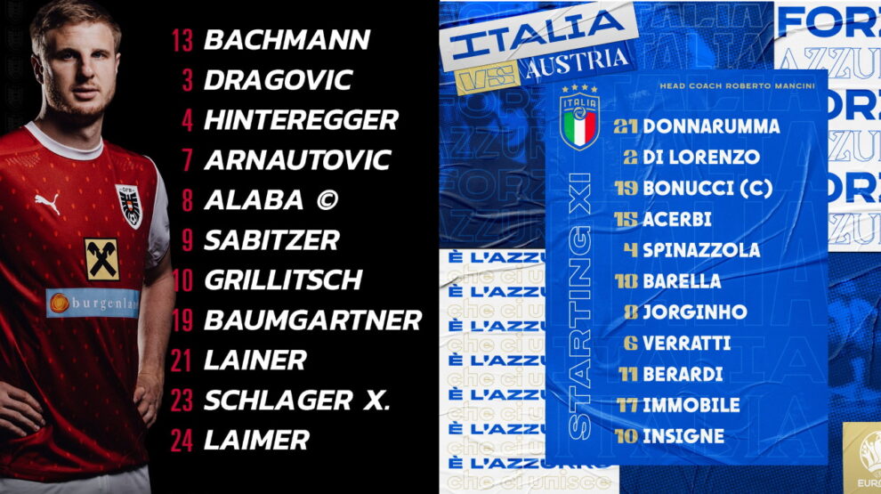 21:02. Команды сказали, кем будут начинать поединок на «Уэмбли». Стартовые составы Италии и Австрии на игру Евро-2020 таковы: