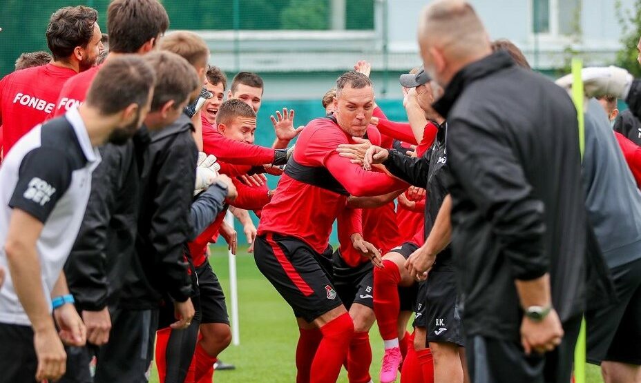 Футболисты, тренерский штаб и персонал клуба пропустили игрока через традиционный коридор.