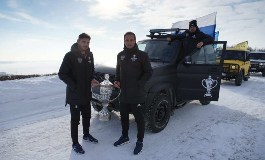 Тур Fonbet Кубка России по футболу взрывает Ульяновск. Накануне матча «Волга» — «Зенит» амбассадоры турнира Роман Широков, Алексей Игонин и Алексей Гаслин весь день гоняли по городу на черном «УАЗ-Патриоте» с хрустальным Кубком России. И притормаживали в самых культовых местах, чтобы пообщаться с болельщиками.