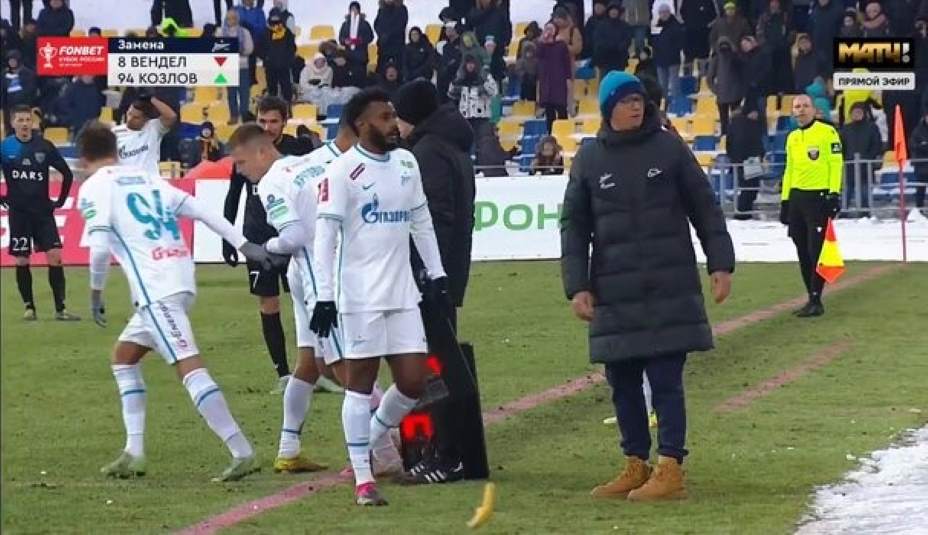 Инцидент с бананом произошел под конец встречи: неизвестный кинул желтый плод в ноги Венделу, когда тот уходил на замену. В момент игры особого значения этому футболист не придал – просто пнул банан в сторону. Скандал начался уже после финального свистка.