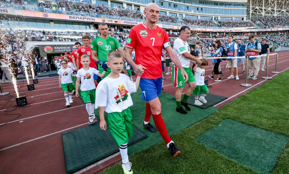 Легенды сборной России приехали в гости к легендам белорусского футбола. И сделали это, конечно, не только ради игры. В эти дни Беларусь отмечает 80-летие освобождения от немецко-фашистских захватчиков. Совместный матч — дань памяти общей истории. В день игры футболисты обеих команд возложили цветы на мемориальном комплексе «Хатынь», Елена Север исполнила песню «Верните память» прямо перед матчем, а 98-летний кавалер ордена Отечественной войны Федор Сергеевич Фещенко нанес первый удар по мячу. А еще этот матч — большая история футбола обеих стран.