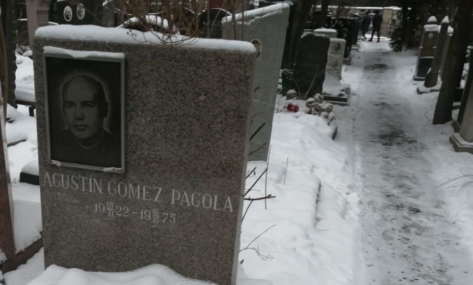 На шестой аллее четвертого участка Донского кладбища можно заметить скромный невысокий памятник из темно-серого мрамора. Рядом с портретом еще не пожилого лысоватого мужчины надпись на испанском языке — Agustin Gomez Pagola. И годы жизни 1922 — 1975. Здесь, в ставшей для него родной Москве, нашел свой покой футболист, разведчик и политик Агустин Гомес.