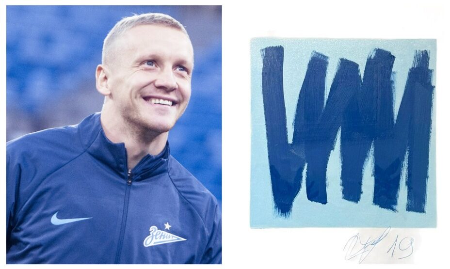Интересно, что полотно уже имеет выставочный опыт: в 2025 году «Синий квадрат» был представлен широкой публике на выставке, приуроченной к 100-летнему юбилею петербургского «Зенита» — клуба, в котором Смольников провел яркую часть своей карьеры.