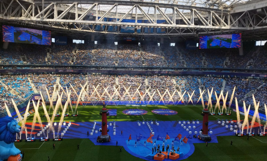 Ростральные колонны на стадионе "Зенита" зажгли уже перед матчем. Фото: "КП Спорт"