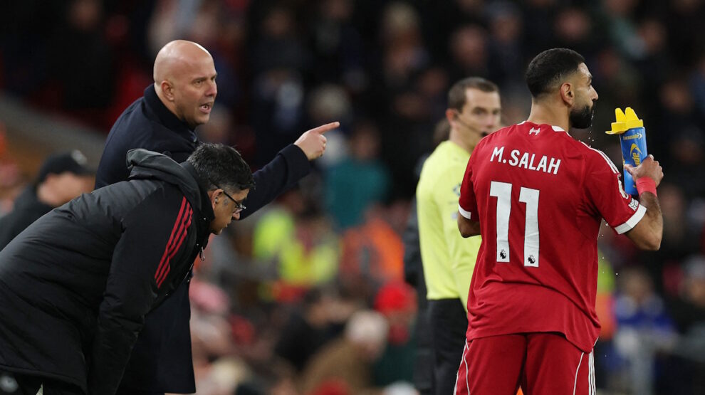 На 17-й минуте Джо Гомес прорвался по флангу и прострелил на Экитике – удар француза ушел выше. На 22-й Вирц влетел в штрафную и пяткой отпасовал Экитике, но тот промахнулся. Кризисный момент для «Ливерпуля» случился на 24-й: Джо Гомес дернул мышцу и сел на газон. На 26-й его заменил Мохамед Салах, недавно конфликтовавший со Слотом. Египтянин сразу добавил остроты: на 28-й Алексис Мак Аллистер едва не забил после паса Салаха, но Вербрюгген перехватил.