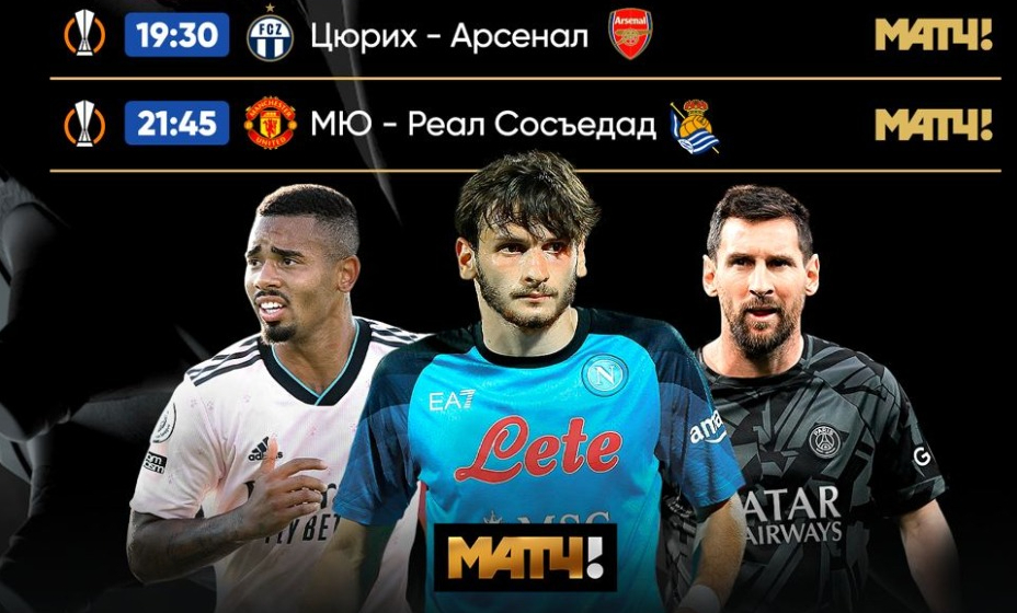 И, наконец, в четверг, 8 сентября, на телеканале «Матч ТВ» будет показано два матча групповой стадии Лиги Европы. В 19:30 начнется матч «Цюрих» — «Арсенал» Лондон, а в 21:45 прозвучит стартовый свисток у матча «Манчестер Юнайтед» — «Реал Сосьедад».
