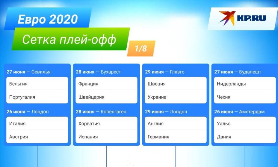 Один из четвертьфиналов пройдет в российском Санкт-Петербурге. Это будет 7-й матч Евро, который примет город на Неве. Правда, из-за ситуации с COVID-19 УЕФА оставил право за Санкт-Петербургом отказаться от проведения этой игры, если эпидемиологическая ситуация значительно ухудшится.