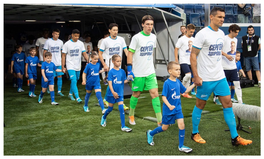 Встреча, прошедшая в Санкт-Петербурге на стадионе «Газпром Арена», завершилась с крупным счетом 3:0. Футболисты обеих команд вышли на игру в белых футболках в поддержку хавбека: «Сергей, здоровья».
