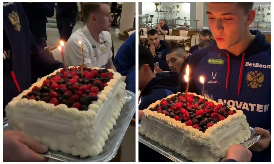 А когда все закончилось и журналисты разъехались с базы в соцсетях сборной России появилось видео, где команда поздравляет с 20-летием Кирилла Глебова и дарит ему торт. Причем настолько огромный, что тянет на особо тяжкое преступление по меркам запрещающего сахар в своих командах Валерия Карпина.