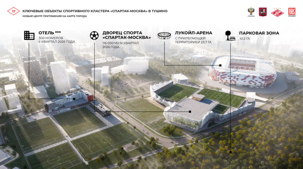 «В новом комплексе общей площадью 110 тысяч «квадратов» разместятся полноформатный крытый манеж, 3 футбольных поля, 5 залов специализированной спортивной подготовки, зал двигательной активности для детей, реабилитационно-восстановительный центр, конференц-центр с залами-трансформерами и размещением до 600 человек, 28 раздевалок, столовая для спортсменов, тренерские и судейские комнаты», — говорится в официальном заявлении красно-белых.