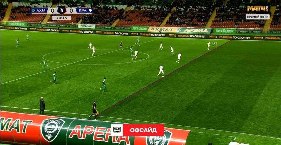 Появилось фото офсайда, из-за которого «Ахмат» остался без гола. Судья отменил взятие ворот после просмотра VAR