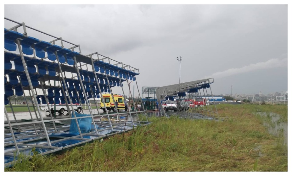 Об этом сообщили в ГУ МЧС по Ростовской области. В ходе спортивного мероприятия трибуну с людьми сдуло ветром из-за чего она перевернулась. По предварительным данным, группа с детьми пряталась от дождя под навесом на трибуне.