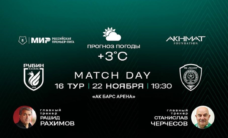 В субботу, 22 ноября, в рамках 16-го тура РПЛ казанский «Рубин» примет грозненский «Ахмат».