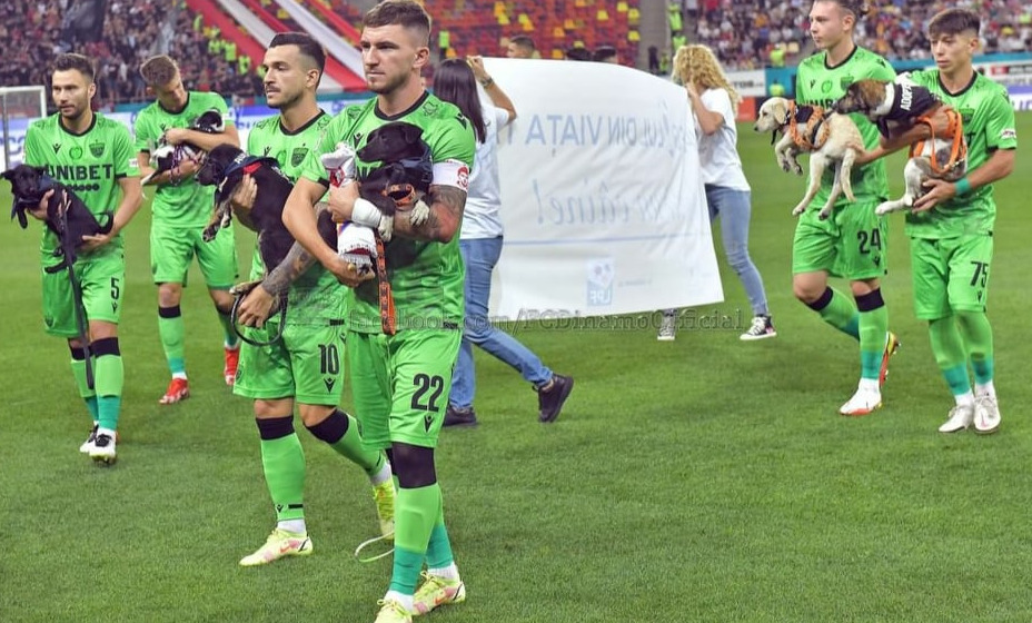 Футболисты бухарестского «Динамо» стали участниками благотворительной акции в поддержку бездомных животных. Игроки клуба перед началом матча с ФКСБ вышли с питомцами на руках.