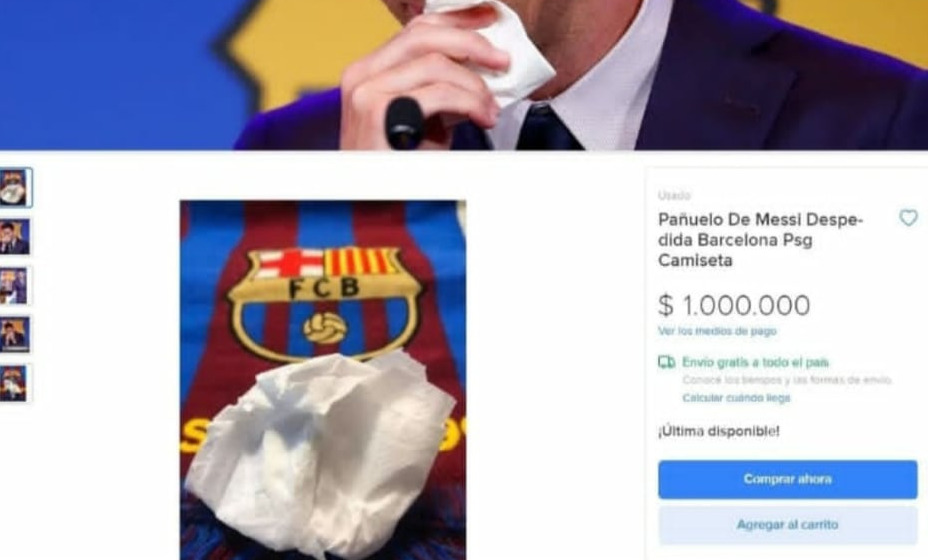 Позже на аукционе выставили салфетку со слезами шестикратного обладателя «Золотого мяча» аргентинского форварда Лионеля Месси, которую оценивают в один миллион долларов США. Объявление появилось в пятницу, 13 августа, на платформе Mercado Libre.