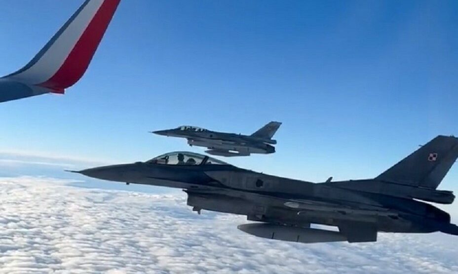 Национальную команду до границы сопровождали истребители F-16. Об этом сообщил министр национальной обороны Мариуш Блащак.