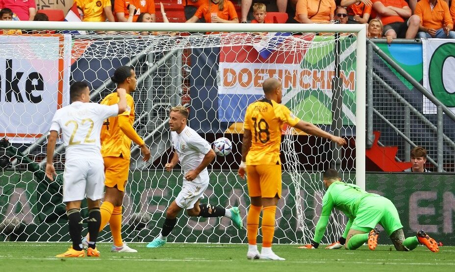 Сборная Италии одержала победу над командой Нидерландов в матче за третье место Лиги наций УЕФА. Итоговый счет – 3:2.
