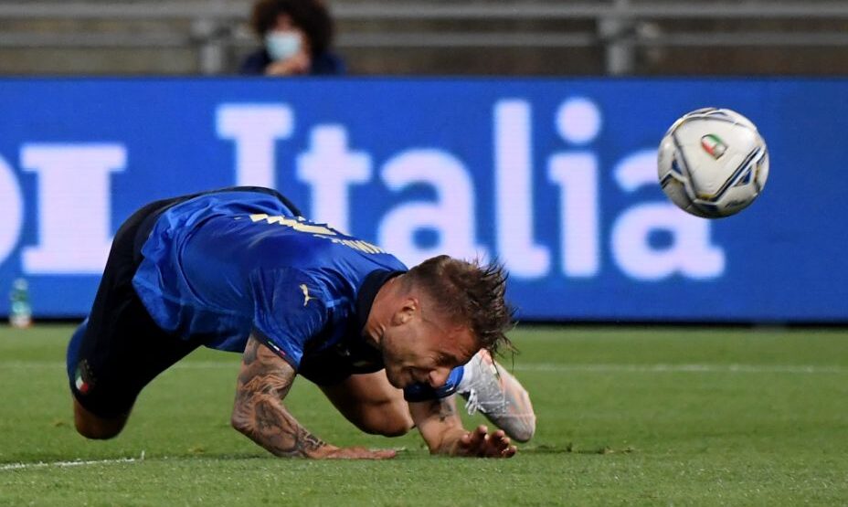 Встреча с чехами позволила Манчини проверить основной состав своей сборной. Главный тренер выпустил в старте большую часть местных лидеров. В том числе и форварда Чиро Иммобиле, пропустившего голевое избиение Сан-Марино неделей ранее. Страйкер «Лацио» и открыл счет в середине тайма, ворвавшись в штрафную чехов и поймав голкипера Павленку на противоходе. К концу же первых 45-ти минут Барелла снова огорчил «народную команду», причем гол получился курьезным. Игрок «Интера» бил в «девятку», но отскок от защитника Брабеца перенаправил мяч по другой траектории прямо за шиворот вратарю.