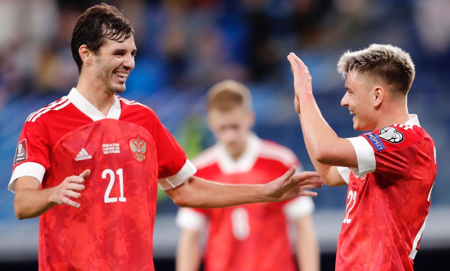Сборная России по футболу с разгромным счетом обыгрывает команду Кипра в домашнем матче 9-го тура отборочного цикла чемпионата мира-2022.