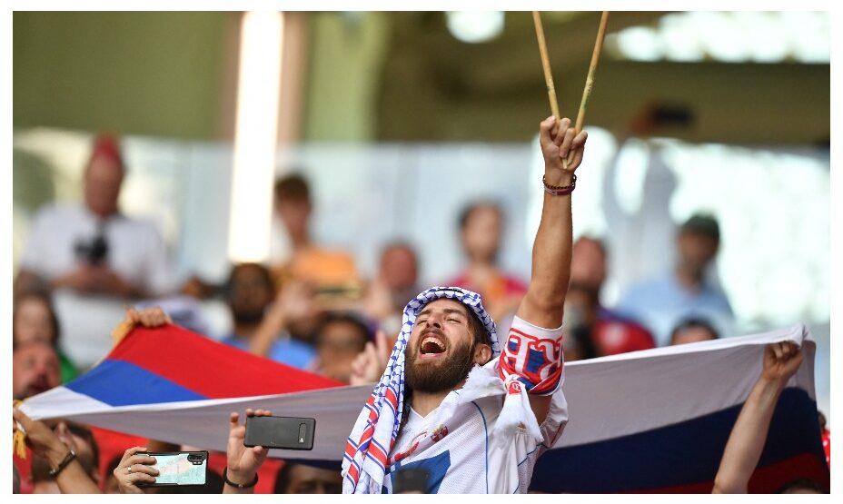 Сербские болельщики танцевали под мелодии известных русских песен, которые исполнили арабские музыканты перед началом матча между сборными Сербии и Камеруна на чемпионате мира по футболу в Катаре.