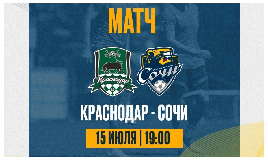 В субботу, 15 июля, в Сочи будет сыгран товарищеский матч по футболу, в котором «Сочи» встретится с «Краснодаром». Игра состоится на домашнем стадионе южан «Академия ФК «Краснодар».