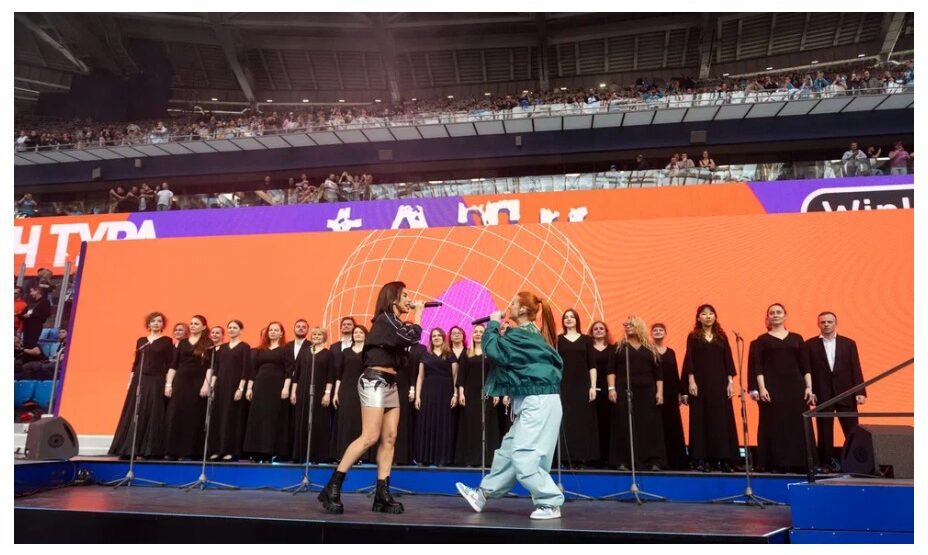 Группа выступила с песней «Нас не догонят» перед началом матча «Зенит» — «Спартак» в 26-м туре чемпионата России. Идет второй тайм впереди сине-бело-голубые 2:1.