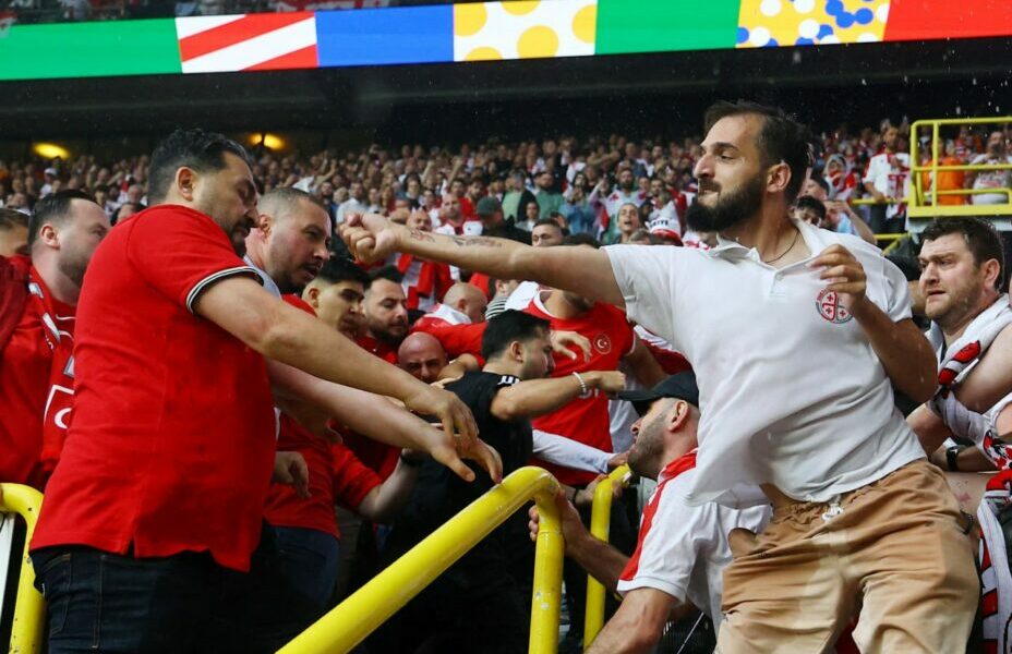 Фанаты сборных Турции и Грузии устроили массовую драку прямо на трибунах перед очным матчем группового этапа на Евро-2024.