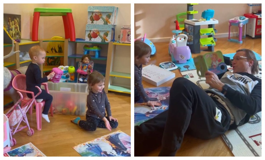 На видео, которое Дарья опубликовала в Telegram, Карпин лежит на полу в детской комнате с книжкой в руках. Дочки отбросили свои игрушки и как завороженные слушали сказку в исполнении своего отца. «Папа дома, а завтра опять поезд», — подписала видео Дарья.