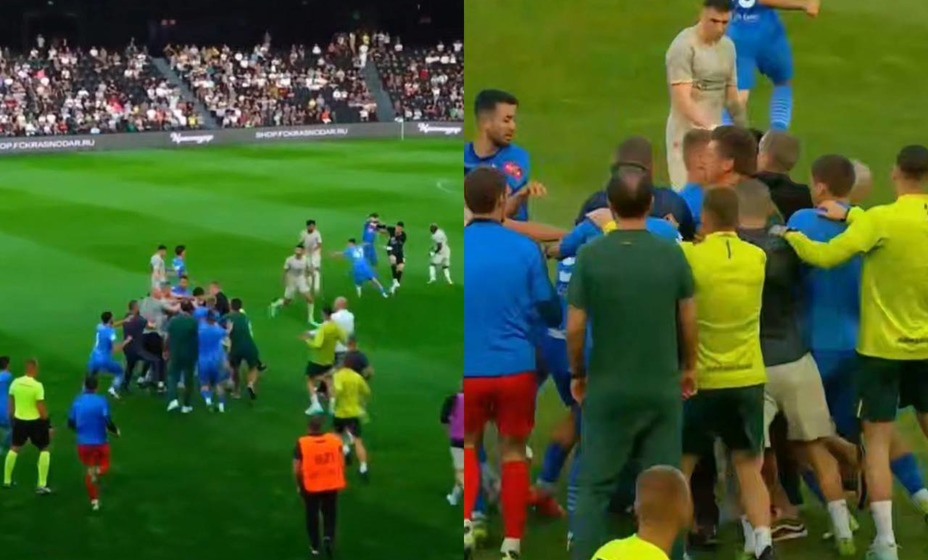 В ходе товарищеского матча между футболистами «Краснодара» и махачкалинского «Динамо» произошёл жёсткий конфликт. На 39-й минуте игры спортсмены обеих команд столкнулись в центре поля, что привело к масштабной драке.