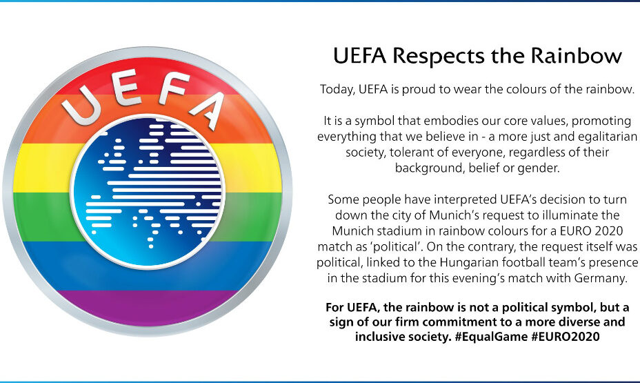 Позднее стало известно, что УЕФА запретил подсветку стадиона «Альянц Арена» в Мюнхене в радужных цветах в знак поддержки ЛГБТ-движения перед матчем Венгрия — Германия.