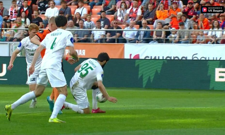 Спорный момент произошел на 36-й минуте встречи. Мяч попал в руку защитнику «Ахмата» Арсену Адамову. Однако даже после видеоповтора судья не назначил удар с точки.
