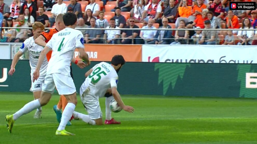 Спорный момент произошел на 36-й минуте встречи. Мяч попал в руку защитнику «Ахмата» Арсену Адамову. Однако даже после видеоповтора судья не назначил удар с точки.