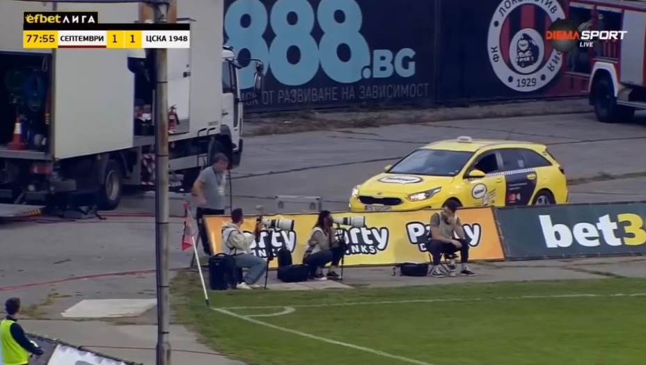 Но то, что произошло все в той же Болгарии на матче чемпионата страны «Септември» — «ЦСКА 1948» запомнится болельщиками особо. На 76-й минуте встречи, когда хозяева разыгрывали угловой, у противоположного углового флажка вдруг появилось такси, которое пыталось развернуться на беговой дорожке. Как потом оказалось, таксист просто заблудился и каким-то образом заехал прямо в чашу центрального стадиона Софии «Васил Левски» и стал искать вызвавшего его пассажира.