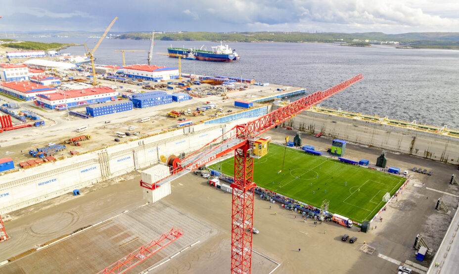 Обычно в этом доке собирают огромные заводы по добыче сжиженного газа. По соседству находится гигантский цех №107. Своими размерам он похож на арену ЦСКА со всеми ее офисными башнями. Там монтируют «кубики» метров 50 на 50. Потом вывозят их в тот самый плавучий док. И как конструктор строят из них заводы. То есть в футбол играли на заводе по производству заводов. Но в этот день на полтора часа рабочие бросили все дела и заняли самые привилегированные места — на границах плавучего дока.