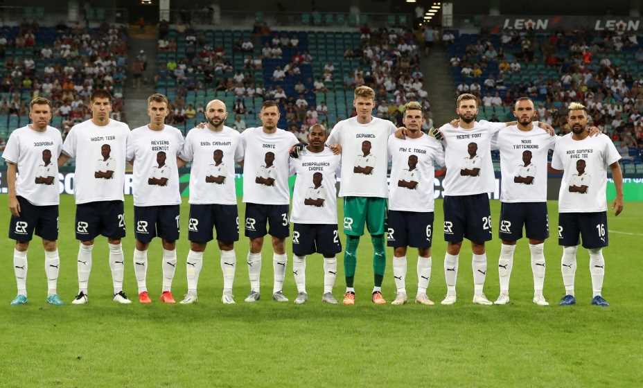 Игроки «Сочи» вышли на матч с «Химками» в футболках в поддержку травмированного Ангбана. Ивуариец получил тяжелую травму в предыдущем туре в игре против «Ростова», которая завершилась вничью (2:2).