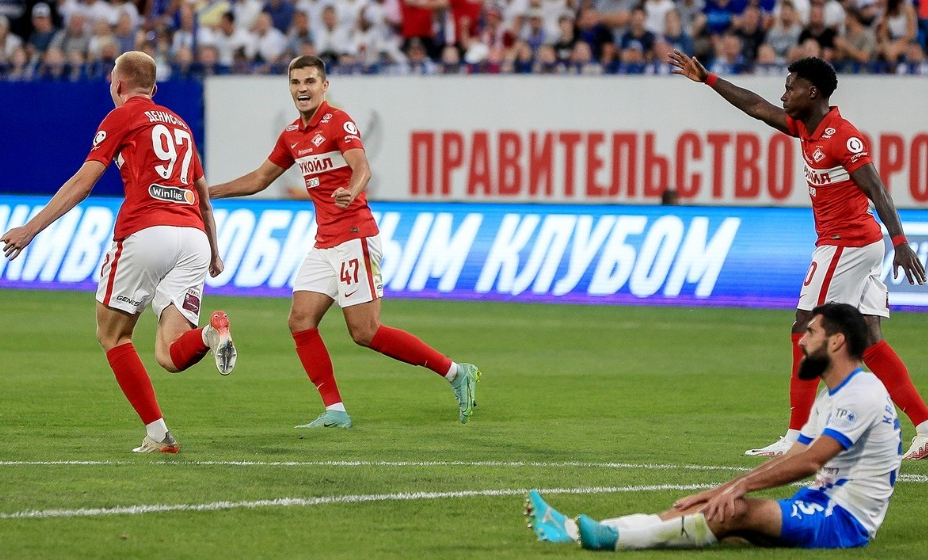 Красно-белые при этом проигрывали после первого тайма 0:1 после гола в исполнении Аслана Дашаева на 23-й минуте. Во второй половине встречи у «Спартака» по голу забили Роман Зобнин, Даниил Денисов, Мацей Рыбус и Квинси Промес.