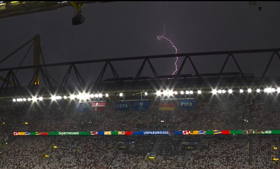 Матч 1/8 финала Евро Германия — Дания прерван из-за молний над стадионом