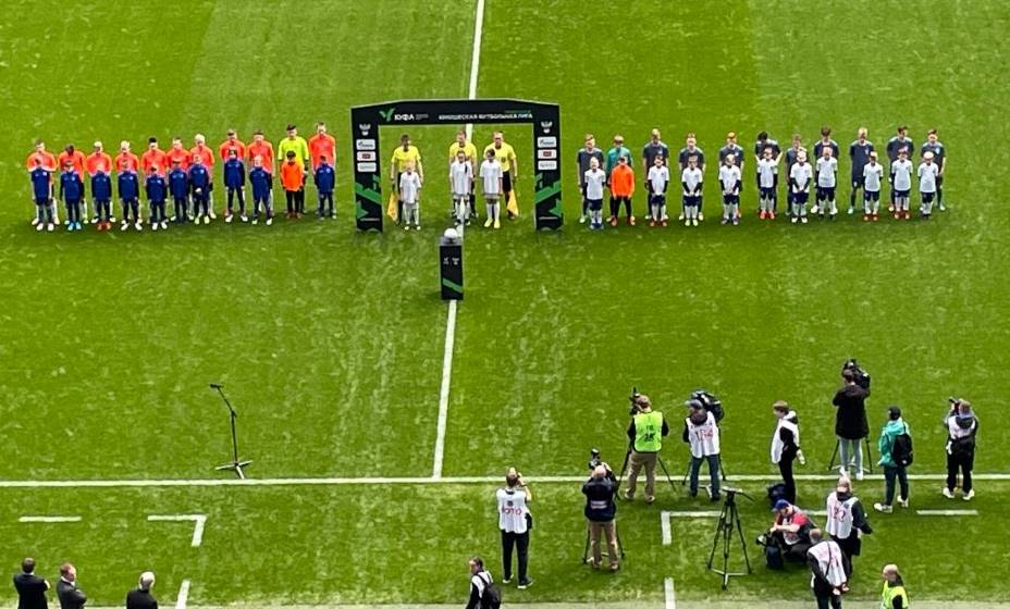 И начали сразу с дерби: РЦПФ-Нижний Новгород (Нижний Новгород) — СШОР-8 (Нижний Новгород). Для 15-16-летних парней, которые только начинают свою футбольную карьеру, невозможно придумать площадки лучше. Огромная арена «Нижний Новгород» в полном распоряжении. Идеальней газон и объявление составов на матч, как это бывает у профессионалов в РПЛ или ФНЛ. Даже гимн России перед стартовым свистком и символический первый удар, который нанес Дмитрий Сычев.
