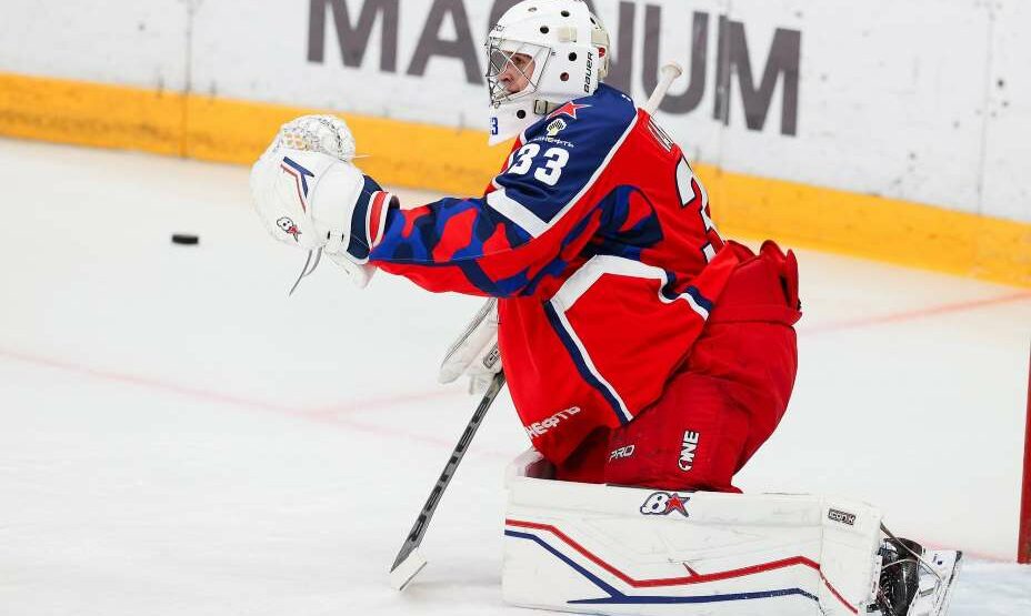 «Выпускник Хоккейной школы ЦСКА дебютировал за главную команду клуба в сезоне 2022/23. В КХЛ он сыграл 39 матчей и одержал 16 побед, отражая 93,3% бросков», — говорится в заявлении столичной команды.