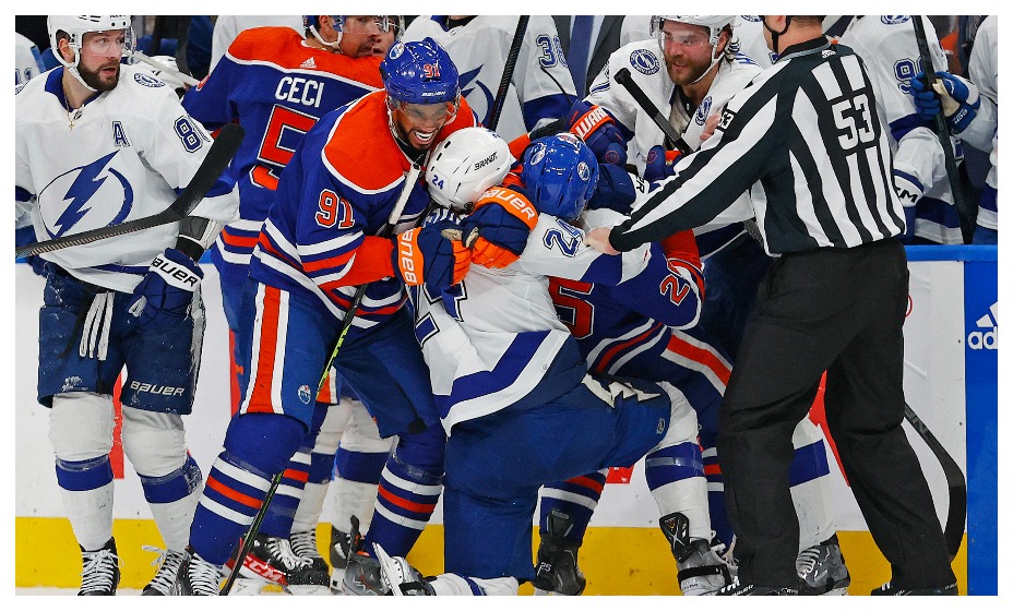 Никита Кучеров толкнул Кейна в спину и спровоцировал серию драк в матче «Тампы» и «Эдмонтона»