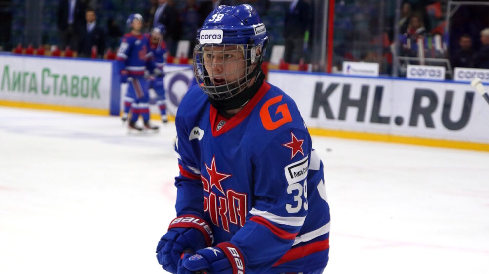 Матвей Мичков был выбран на драфте-2023 в первом раунде под общим седьмым номером.