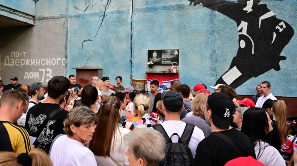 Игроки хоккейного клуба «Локомотив» привезли Кубок Гагарина к дому Ивана Ткаченко.