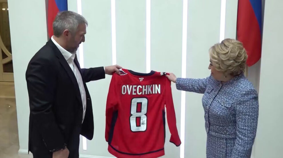 Спустя 1,5 недели после возвращения Овечкин посетил Совет Федерации РФ. Цель визита – обсуждение спорта. А еще была неофициальная часть: капитан «Вашингтона» подарил свой игровой свитер Валентине Матвиенко и сфотографировался с депутатами. В соцсетях тут же предположили, что данное мероприятие – намек на политические амбиции спортсмена. Конец карьеры-то близок…