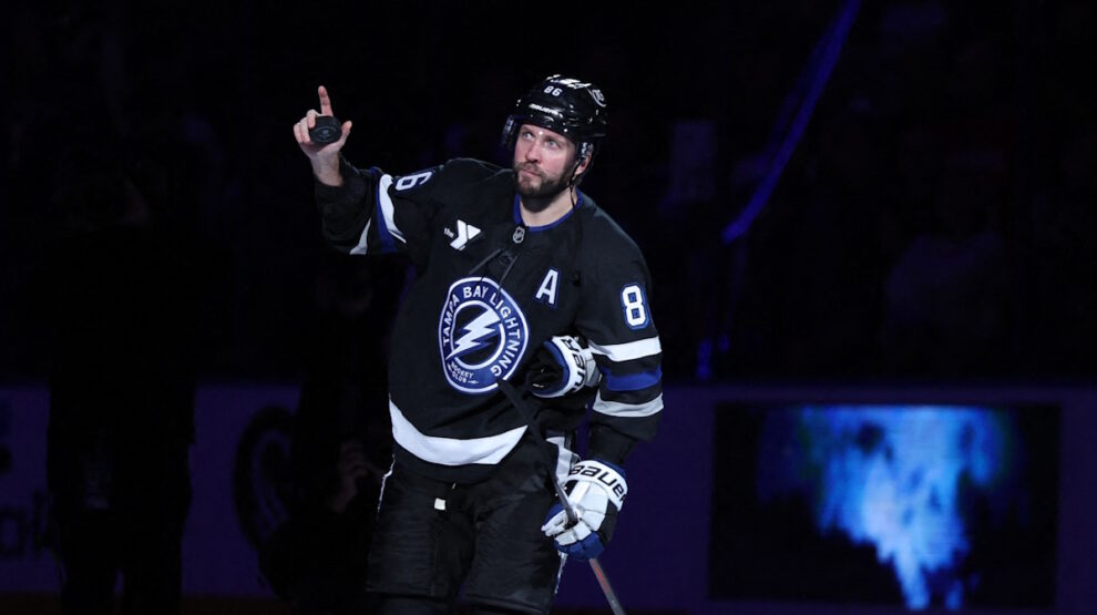 Тампа-Бэй Лайтнингс: Никита Кучеров, Брэйден Пойнт и Джейк Гюнцель.