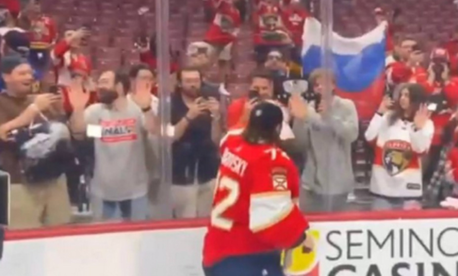 В США болельщики развернули флаг России после победы «Флориды» над «Эдмонтоном» в Кубке Стэнли