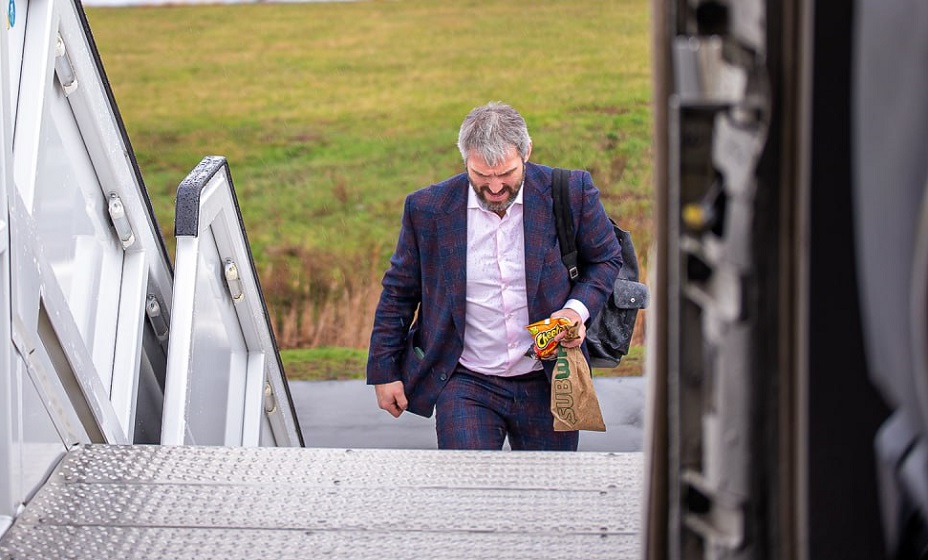 Снимок был сделан в момент посадки на борт самолета. Об этом сообщает клубная пресс-служба.