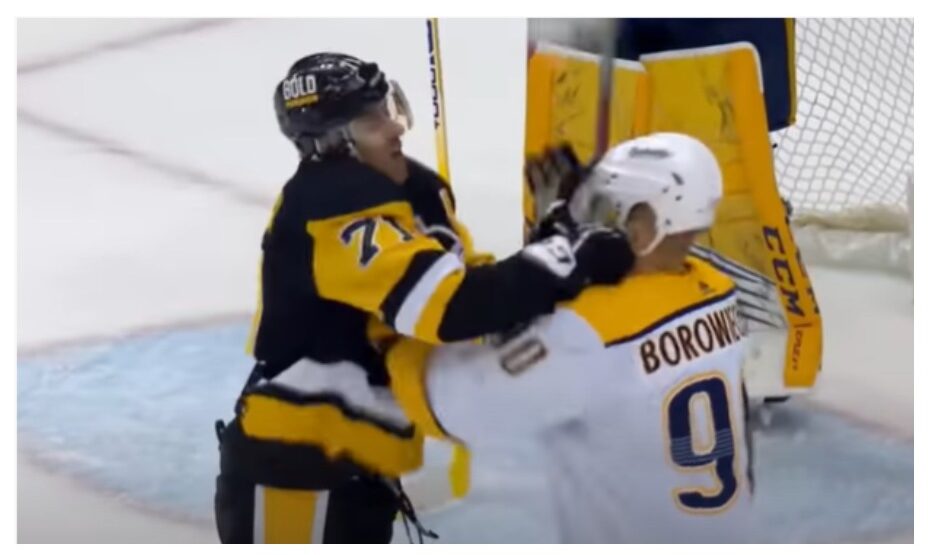 После сирены об окончании второй двадцатиминутки нападающий «пингвинов» Евгений Малкин засадил защитника «Нэшвилла» Марка Боровецки клюшкой сначала по рукам, а затем и по лицу. В результате чего на лице канадского хоккеиста появилась кровь.