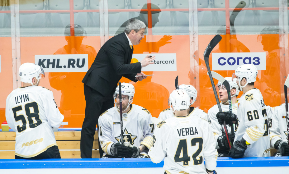 На матче КХЛ хоккеист «Витязя» разбил голову главному тренеру «Адмирала» Тамбиеву