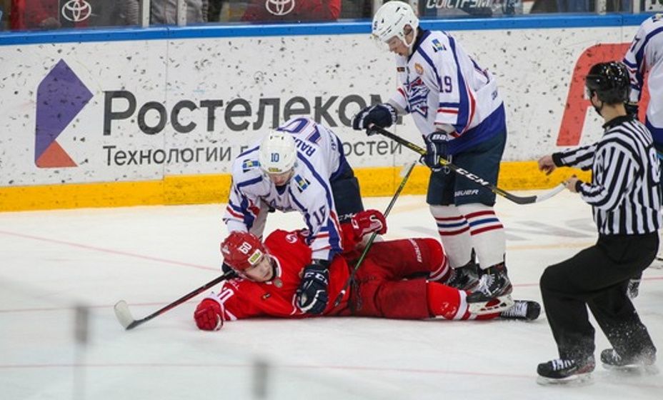«Спартак» и «Сахалинские Акулы» устроили драку пять на пять в матче МХЛ